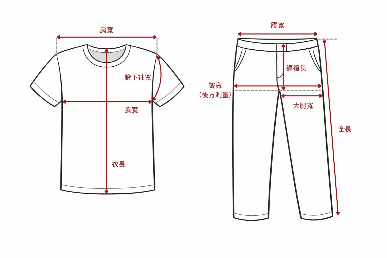 *平量尺寸 ( 單位cm ) 手工測量正負2cm為合理誤差範圍